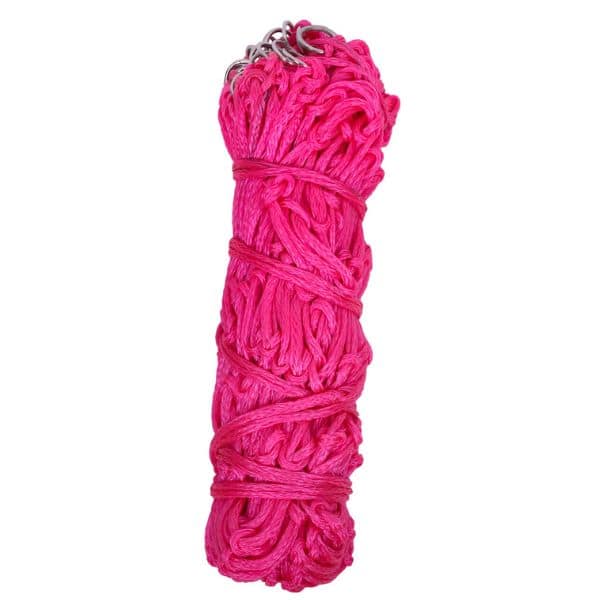 Verkossa on tiheä 5 cm silmäkoko, yläreunassa 22kpl narun läpimentävää metallirengasta ja yksi rengas alhaalla. Pitkän kiinnitysnarun ansiosta verkko on helppo ripustaa lähes mihin tahansa. Valmistettu kestävästä nailonista – kevyt, mutta vahva.